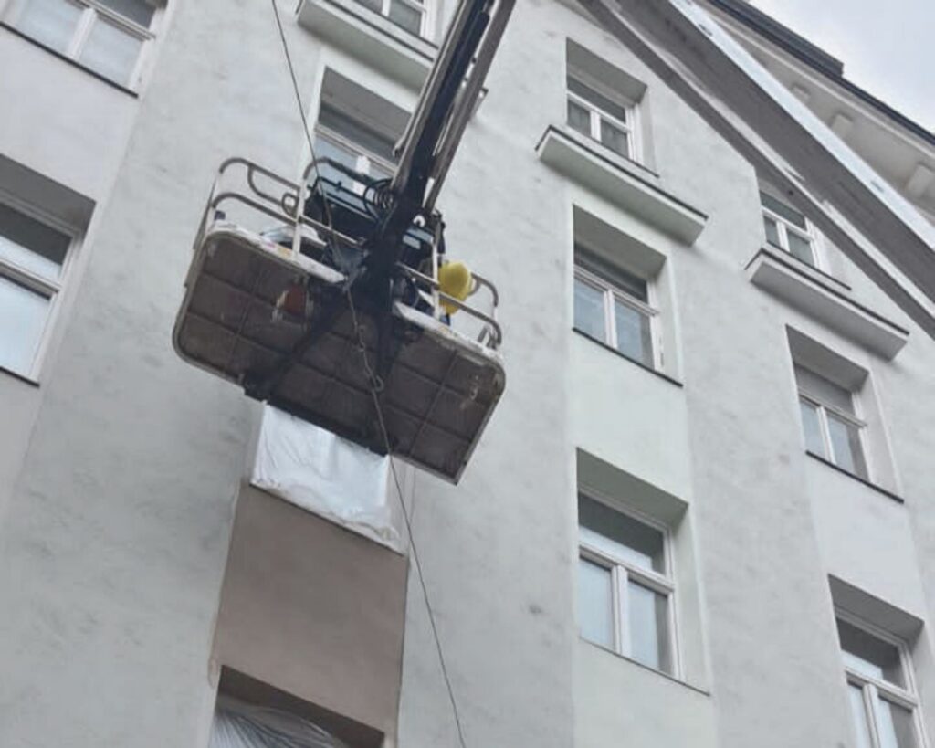 Die Herausforderungen bei diesem Projekt waren vielfältig und komplex. Dazu gehörten das vorsichtige Entfernen der lockeren Verputzteile ohne Schaden am historischen Mauerwerk, die Logistik der Baustellenarbeiten in einem belebten städtischen Gebiet sowie die Einhaltung strenger Denkmalschutzvorgaben. Die Arbeit in Höhen erforderte besondere Sicherheitsvorkehrungen und den Einsatz einer Hebebühne.